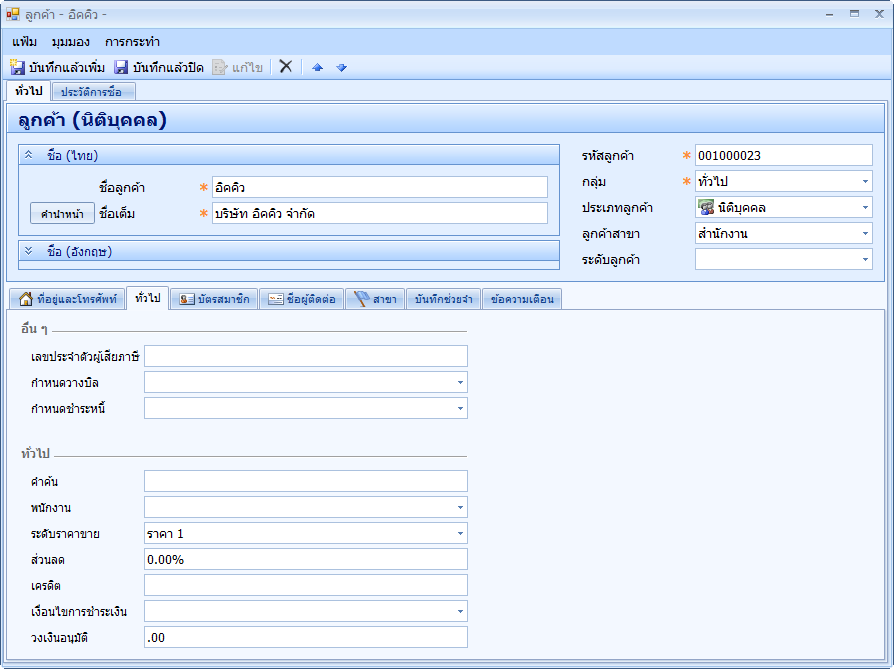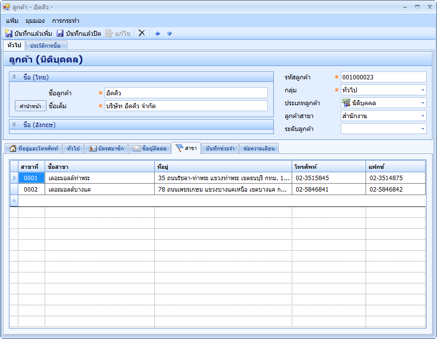 บันทึกรายการสาขาของลูกค้า เพื่อใช้กรณีลูกค้าต้องการให้ออกใบกำกับในนามของสาขา
