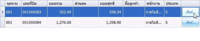 เลือกบิลที่ต้องการ แล้ว คลิกปุ่ม พิมพ์