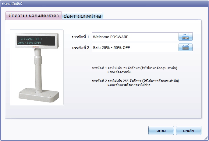 กำหนดข้อความที่แสดงบนจอลูกค้า (Customer Display) และกำหนดข้อความวิ่งบนหน้าโปรแกรม POS