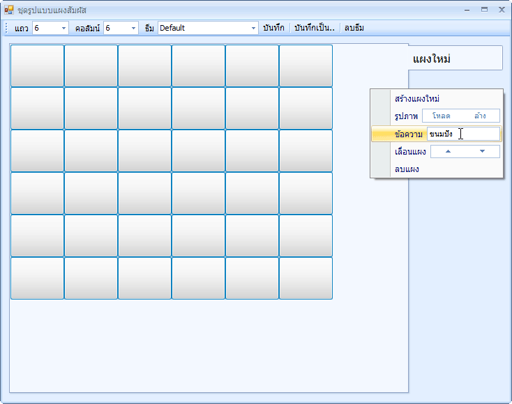คลิกขวา ที่บริเวณพื้นว่างบนแผงสัมผัส จะปรากฏป็อปอัพเมนู ให้คุณป้อนชื่อแผงในช่อง ข้อความ แล้วกดปุ่ม Enter